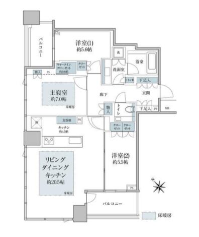 都市ガス、エアコン、W.I.Nクローゼット、CATV、バルコニー、フローリング、光ファイバー、角部屋、床暖房、免震構造、カード決済(初期費用)、シューズインクローゼット、二人入居可、定期借家、保証人不要、分譲賃貸