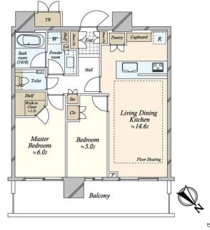 都市ガス、エアコン、トランクルーム、W.I.Nクローゼット、CATV、バルコニー、フローリング、光ファイバー、床暖房、免震構造、クローゼット、シューズボックス、楽器相談可、二人入居可、定期借家、保証人不要、分譲賃貸