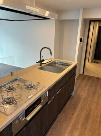ガスコンロ、コンロ3口、システムキッチン、カウンターキッチン、食器洗い乾燥機